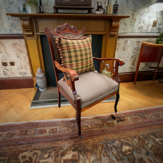 Mahogany Custom French Provintial/Victorian Ladies Chair w/ Carved Wood on Casters